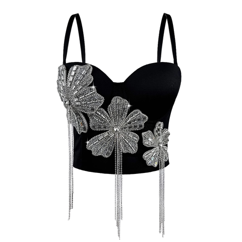 Ocstrade Luxury 3D Flower Rhinestone Tassel Boned Corset De Mujer Tops Summer Black Bodycon Sexy Crop Tops for Women Wholesale